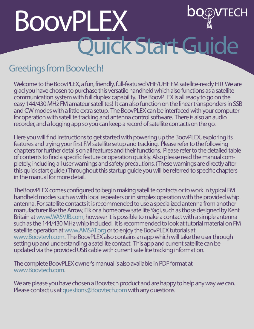 BoovTech BoovPLEX - sample product design and Quick Start Guide |