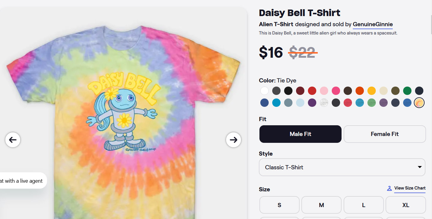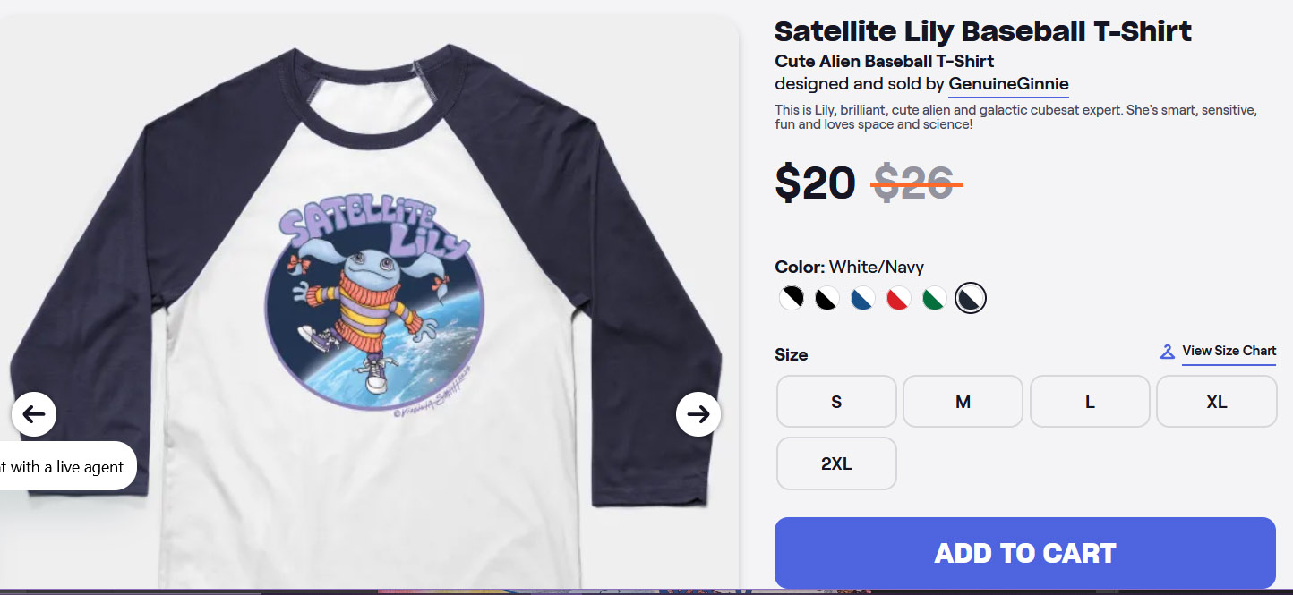 Here is my T-shirt shop on Printify. Find great characters and fantastic designs featuring Satellite Lily, Daisy Bell and more. With fast on-demand printing and shipping, great quality and the best prices every day, this is the best place to get my shirts!